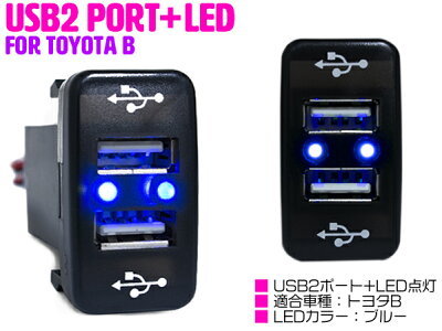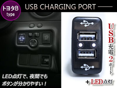 LED付き USB2ポート 充電用 USBスイッチ トヨタB グランドハイエース ドア両開き クルーガー ACU/MCU20系 サクシード NCP/NLP50系 サクシードバンサクシードワゴンシエンタ NCP80系 【スマホ 充電 USBポート 増設 車 内装用品 スイッチパネル スイッチホールカバー】